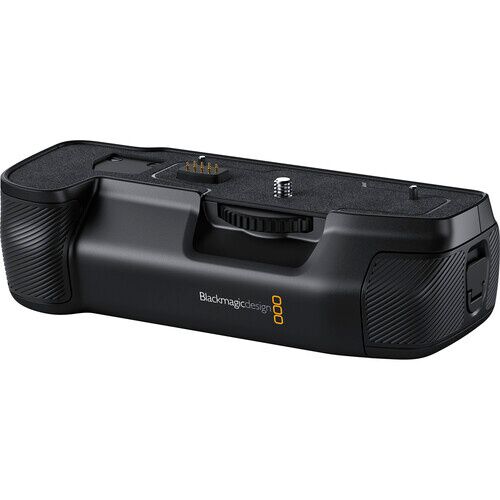 The grip installs onto the bottom of the Pocket Cinema Camera 6K Pro and provides a slide-out tray for two separately available NP-F570 L-series batteries to add up to three hours to your shooting time. The status of both batteries displays on the camera’s display. The batteries can also be charged while installed using the camera’s 12 VDC power input.